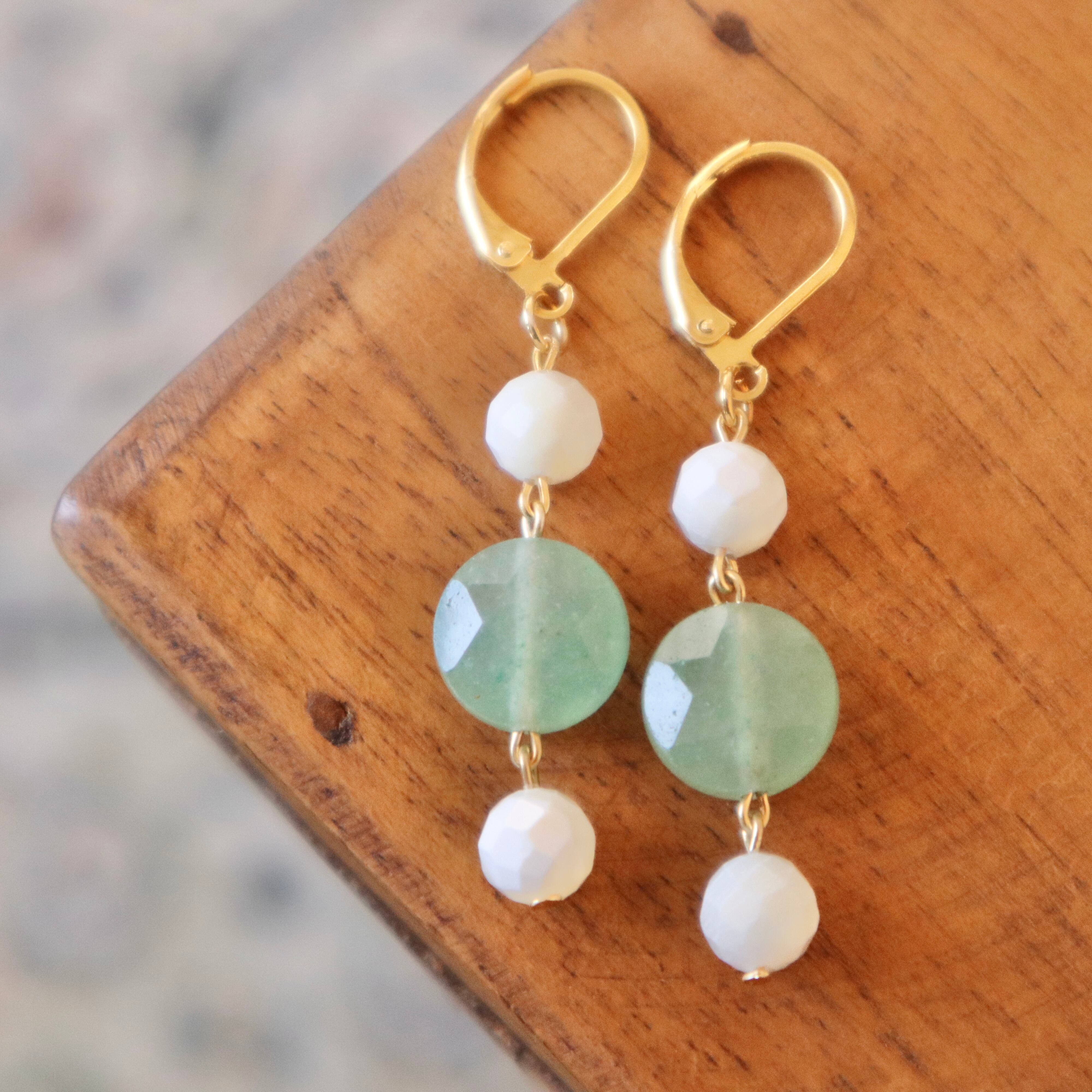 ピアス:グリーンアベンチュリン&ホワイトシェル