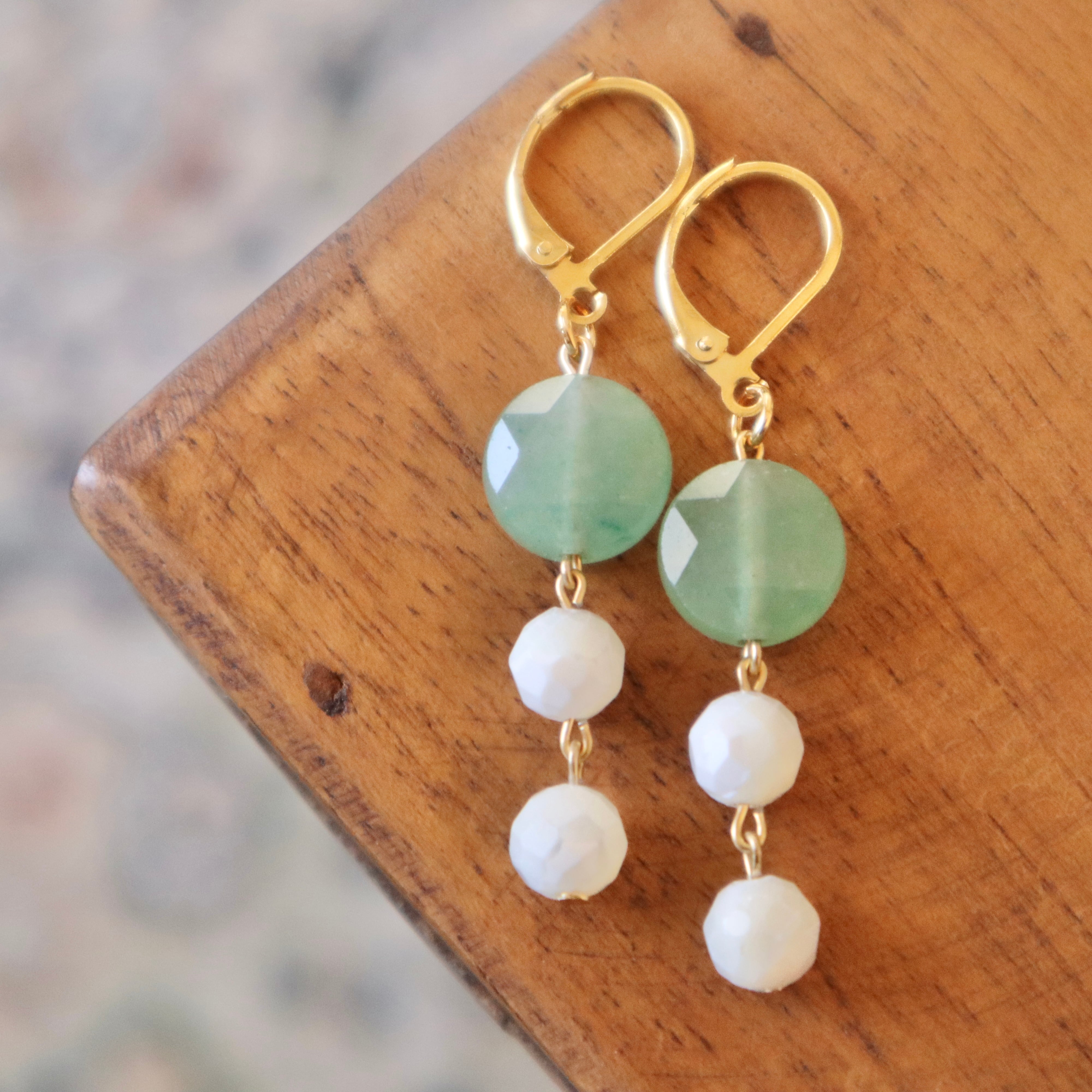 ピアス:グリーンアベンチュリン&ホワイトシェル