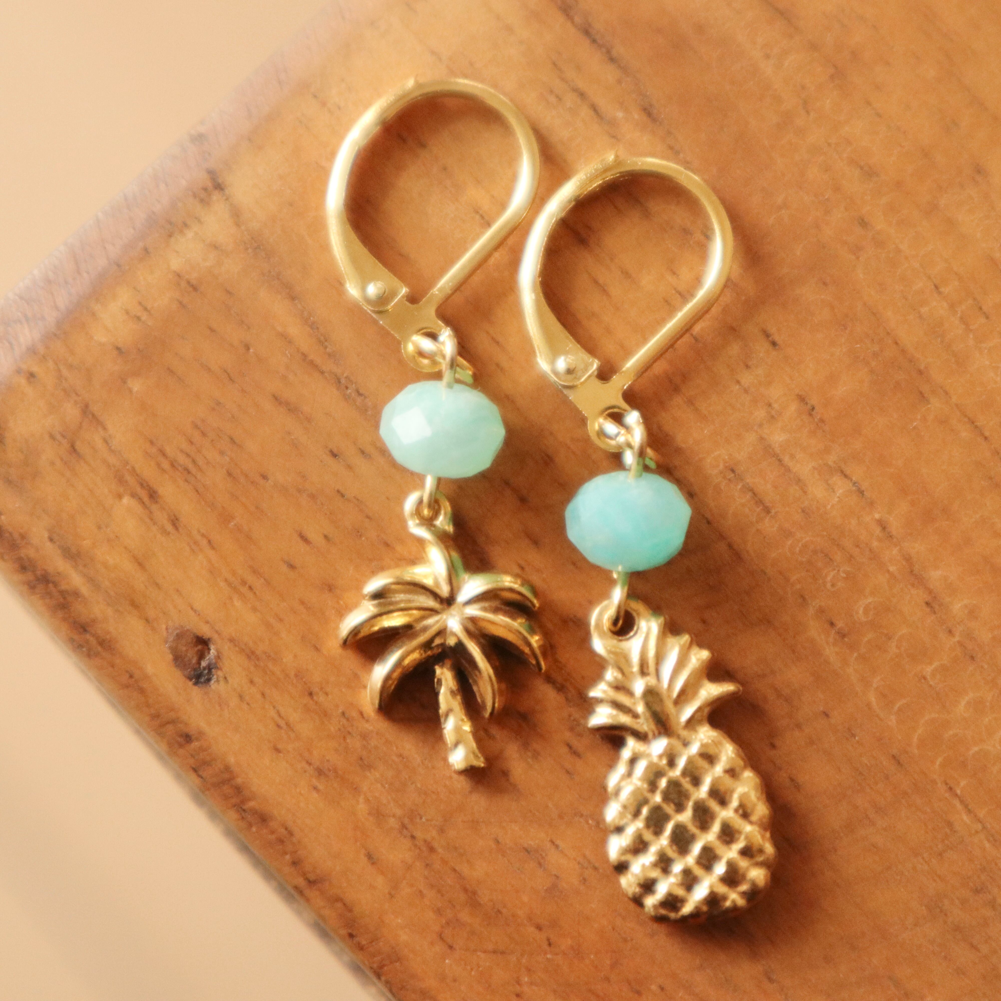 Pineapple, Palm tree & Amazonite : earrings